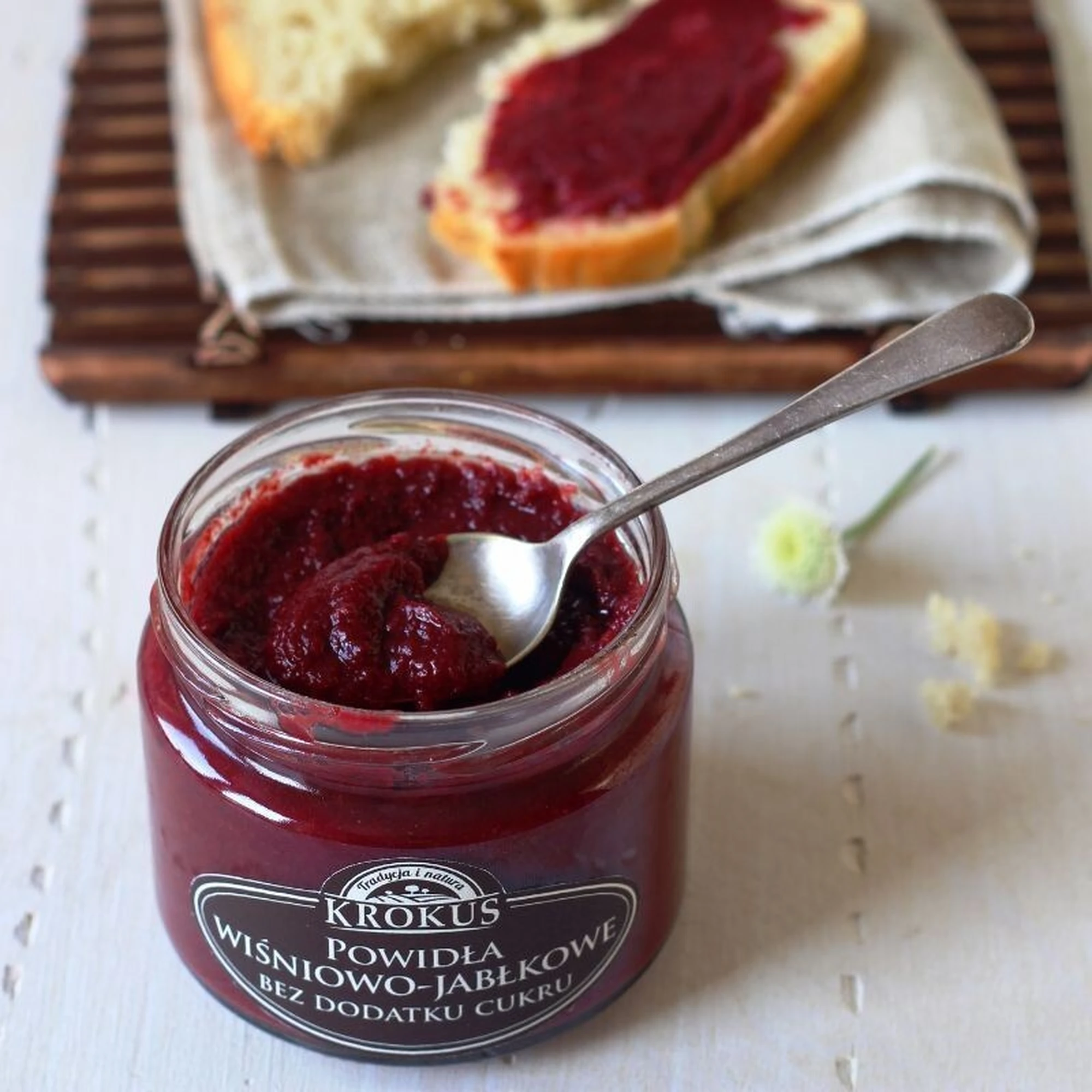 Naturalne powidła z czarnej porzeczki i jabłek bez cukru. Intensywny smak, idealne do pieczywa, deserów i zdrowych przekąsek.