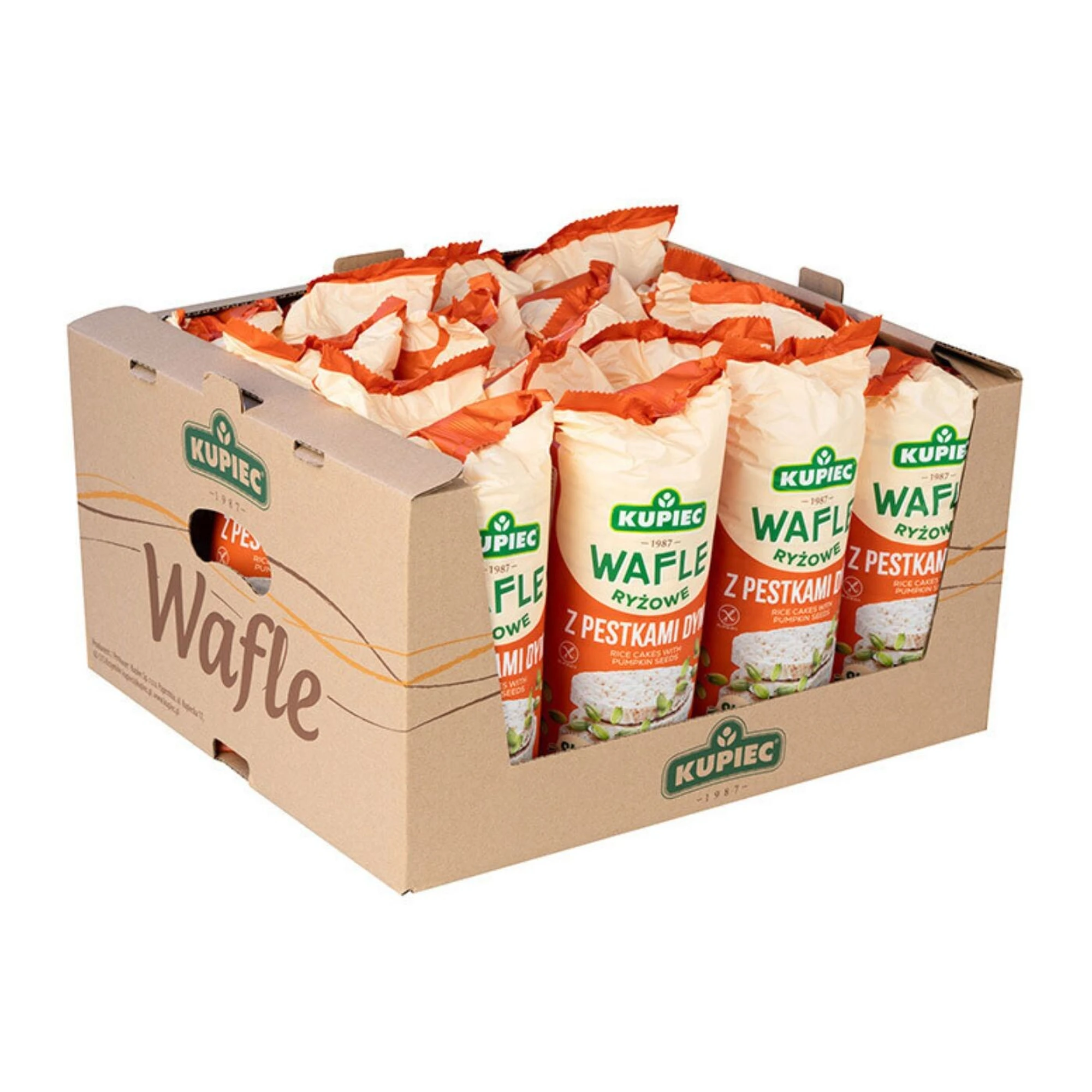 Wafle ryżowe z pestkami dyni Slim to lekkie i chrupiące przekąski, idealne dla osób poszukujących zdrowych alternatyw bezglutenowych. Produkt ten wyróżnia się wysoką zawartością pestek dyni, które są bogate w witaminy z grupy B, E oraz minerały takie jak magnez, cynk i żelazo, wspierając układ odpornościowy i poprawiając samopoczucie. Wafle są naturalnie bezglutenowe, co czyni je odpowiednimi dla celiaków oraz osób na diecie bezglutenowej. Doskonale sprawdzają się jako szybka przekąska, mogą być spożywane same lub z dodatkiem jogurtu, twarogu czy świeżych owoców. Z tego produktu można też przygotować zdrowe kanapki, np. z pastą z awokado, hummusem czy twarożkiem z ziołami. Wafle ryżowe z pestkami dyni Slim to źródło błonnika i cennych składników odżywczych, które dodadzą energii na cały dzień.