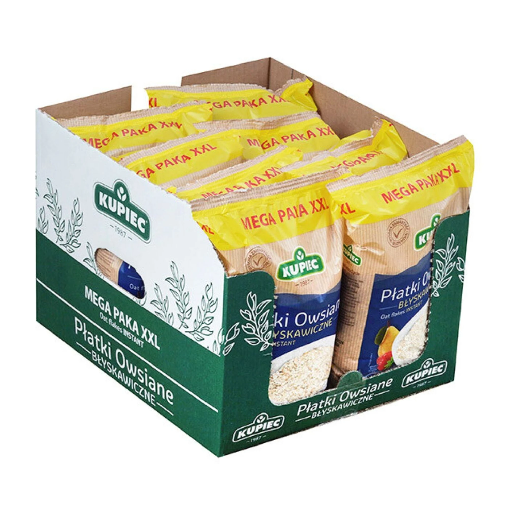 Płatki owsiane błyskawiczne to szybki i wygodny produkt idealny dla osób dbających o zdrową i lekkostrawną dietę. Są bogate w błonnik, witaminy z grupy B oraz minerały, takie jak magnez i żelazo, wspierającym układ trawienny i odpornościowy. Doskonale smakują z dodatkiem świeżych lub suszonych owoców, a także można je wykorzystać jako zamiennik jajka w wypiekach, np. ciasteczkach, kotletach czy pasztetach, co pozwala ograniczyć ilość cholesterolu. Płatki owsiane błyskawiczne to uniwersalny składnik, który sprawdzi się zarówno na śniadanie, jak i w różnych potrawach na co dzień. Dzięki nim można przygotować smaczne owsianki, zdrowe muffiny czy placuszki, dodając im wartości odżywcze i delikatny smak.