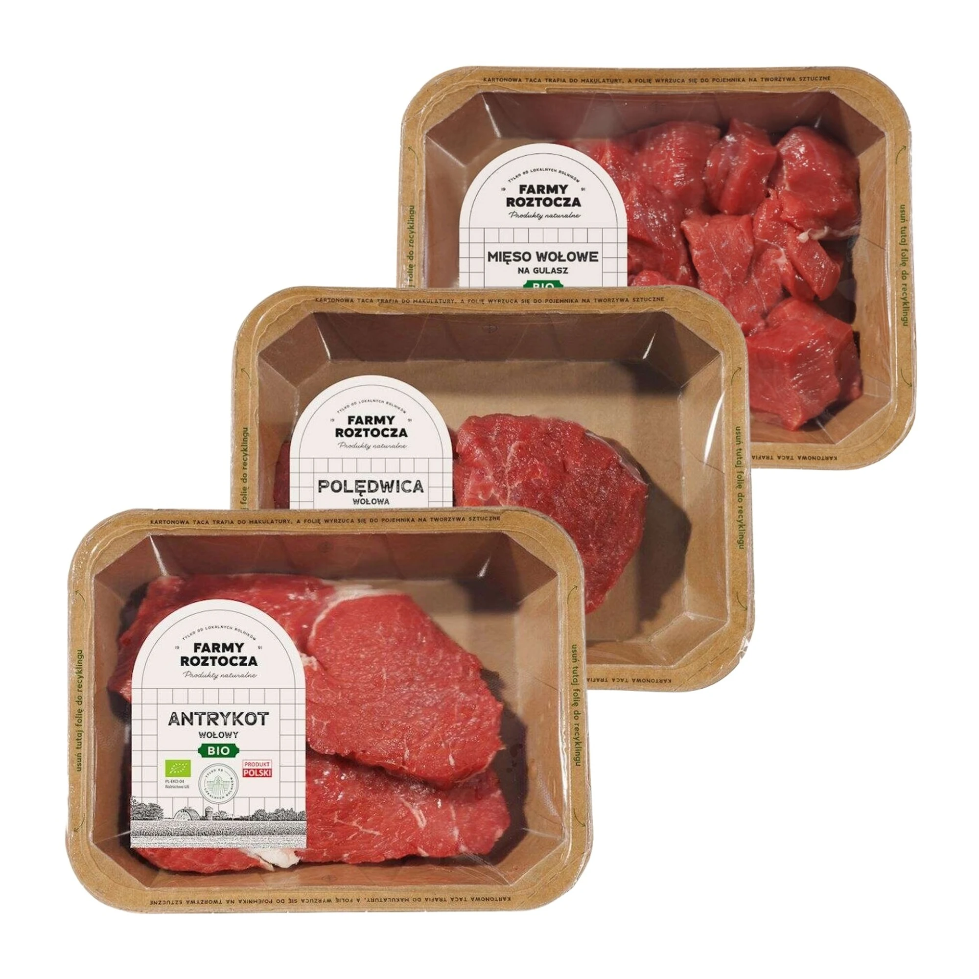 Zestaw mięsa BIO: antrykot wołowy, polędwica wołowa, wołowe na gulasz to wyjątkowa propozycja dla miłośników wołowiny najwyższej jakości. Mięso pochodzi z certyfikowanych, ekologicznych hodowli – bez antybiotyków, hormonów i GMO. Antrykot to idealne mięso na steki – soczyste i pełne smaku. Delikatna polędwica sprawdzi się w daniach wykwintnych, a gulaszowe kawałki doskonale nadają się do długiego duszenia. To komplet idealny na codzienne gotowanie i specjalne okazje.