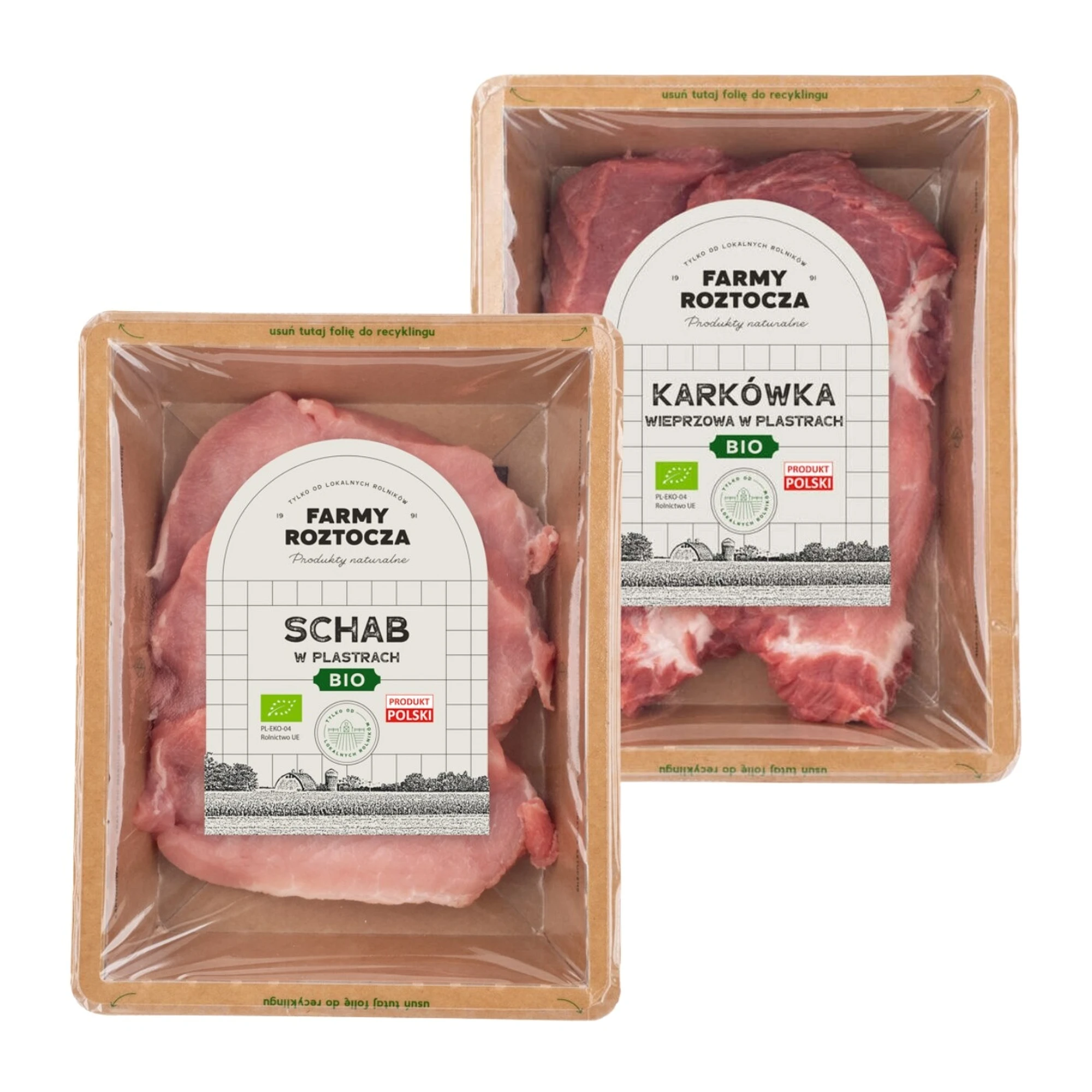 Zestaw mięsa BIO: schab wieprzowy w plastrach, karkówka wieprzowa bez kości to doskonałe połączenie dwóch popularnych rodzajów mięsa w wersji ekologicznej. Schab w plastrach to chudy i delikatny wybór na codzienny obiad, natomiast karkówka bez kości wyróżnia się soczystością i wyrazistym smakiem – idealna na pieczeń, grill lub duszenie. Mięso pochodzi z certyfikowanych hodowli BIO, bez dodatku antybiotyków i GMO.