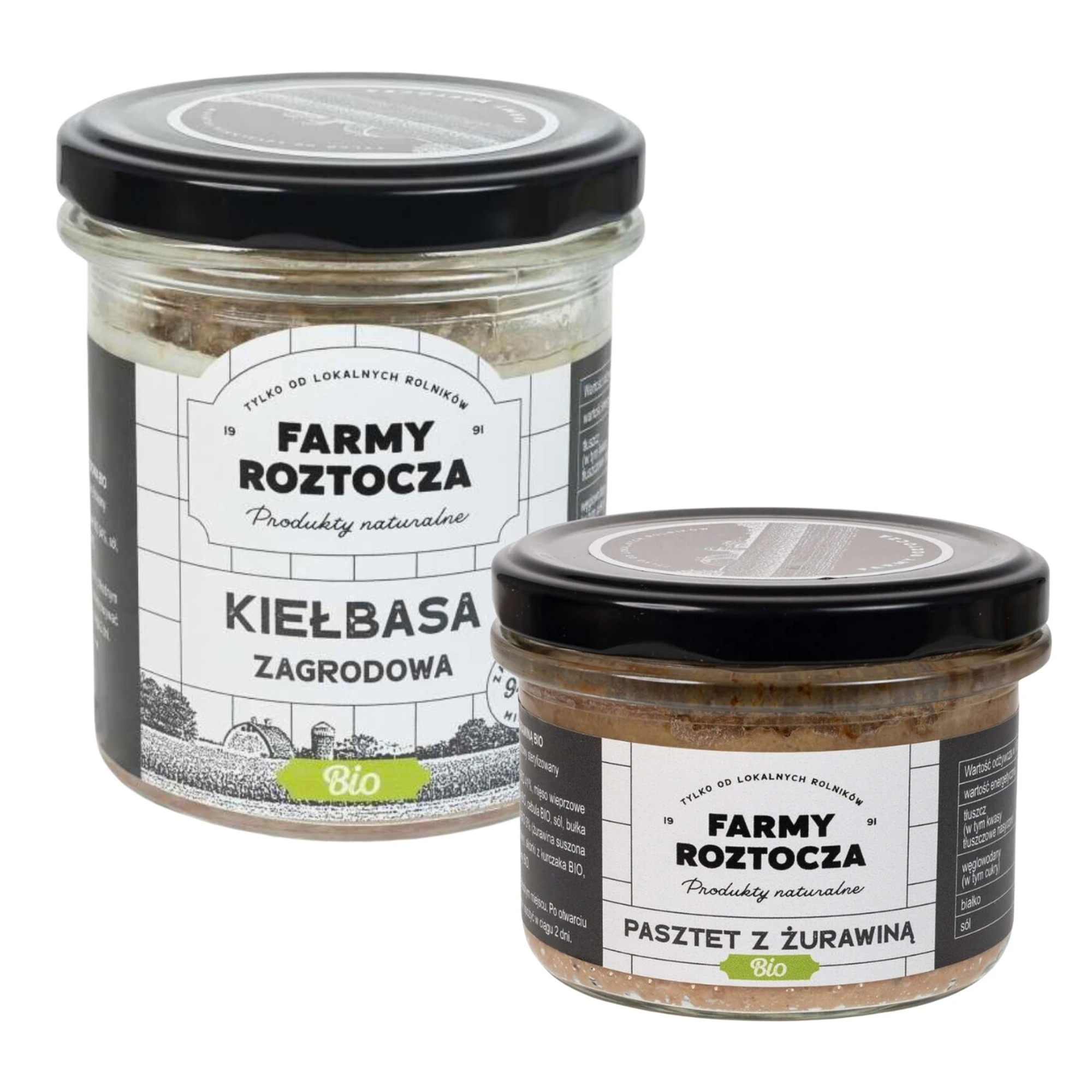 Zestaw BIO: pasztet z żurawiną, kiełbasa zagrodowa to wyjątkowa kompozycja ekologicznych wyrobów mięsnych, które łączą tradycyjny smak z najwyższą jakością. Pasztet z żurawiną to delikatna, kremowa kompozycja drobiowo-wieprzowa z naturalnym dodatkiem słodko-kwaśnej żurawiny, nadającej mu wyjątkowego charakteru. Kiełbasa zagrodowa to klasyczna, aromatyczna kiełbasa o naturalnym składzie, przygotowana według tradycyjnej receptury, idealna zarówno na zimno, jak i na ciepło. Produkty powstały z ekologicznych składników, bez sztucznych dodatków.