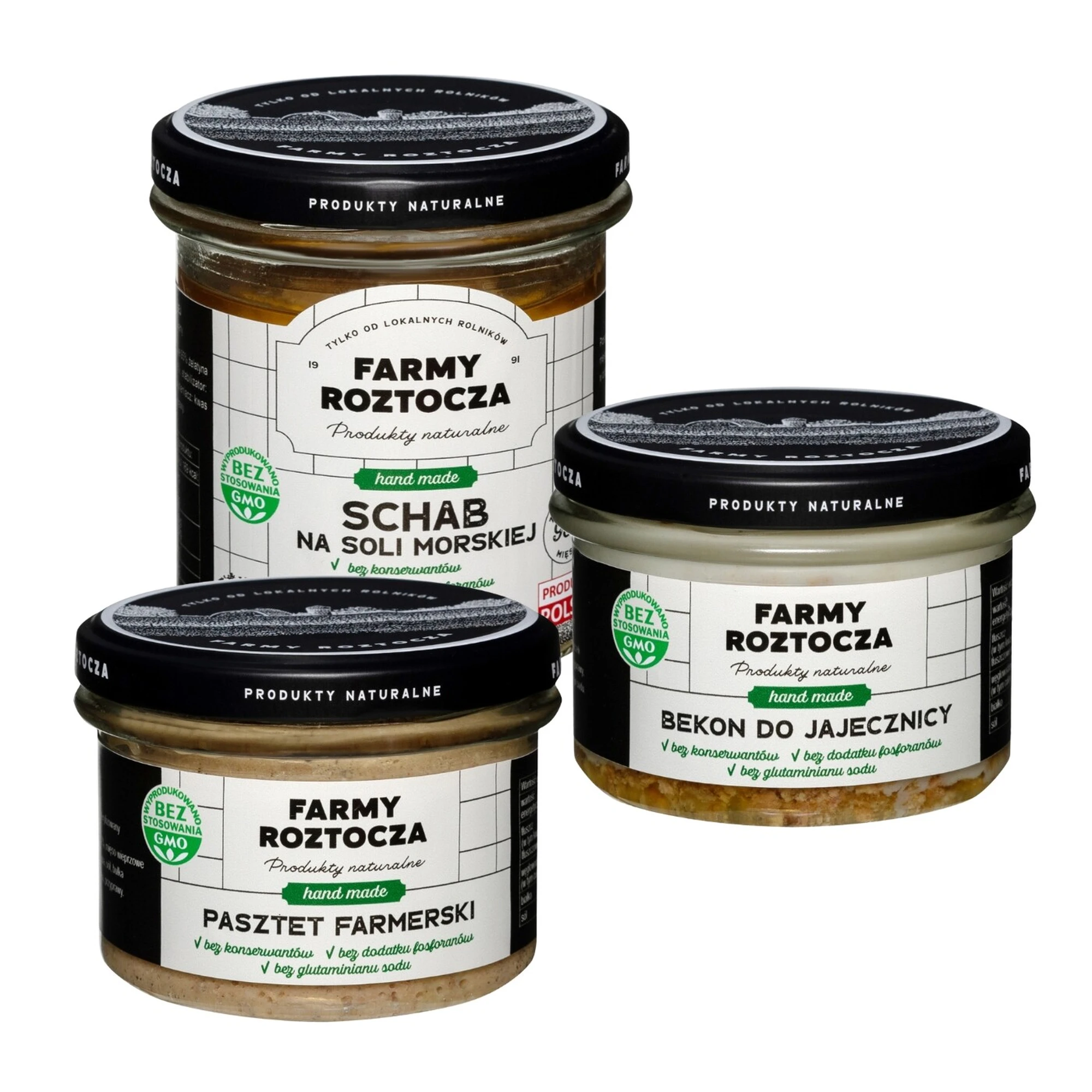 Zestaw wyrobów mięsnych w słoiku: pasztet farmerski, bekon do jajecznicy, schab na soli morskiej to propozycja dla miłośników tradycyjnych smaków w wygodnej formie – pasztet farmerski zachwyca delikatną konsystencją i głębokim aromatem, bekon do jajecznicy doskonale podkreśla smak śniadaniowych dań, a schab na soli morskiej to klasyczna, naturalna przekąska bez zbędnych dodatków – idealne rozwiązanie na kanapki, do jajecznicy lub jako dodatek do domowych dań.